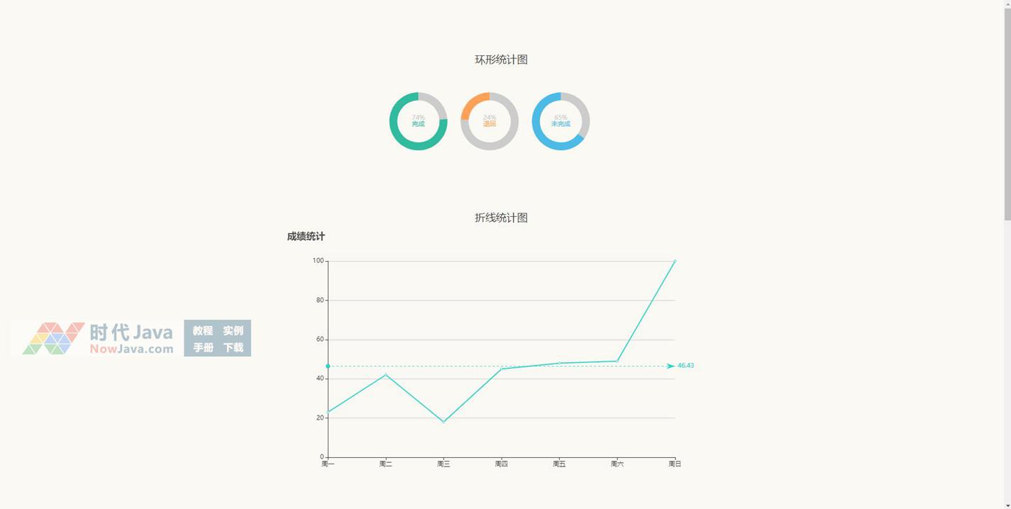 4款基于jQuery跟Echarts.js实现的扁平化风格图形统计图表特效代码,其中有环形统计图、折线统计图、柱状统计图。