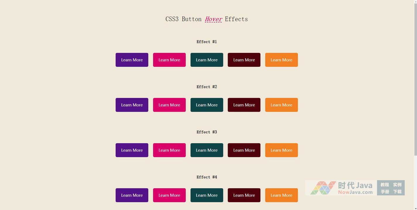 5组简洁漂亮的CSS3鼠标Hover按钮动画特效