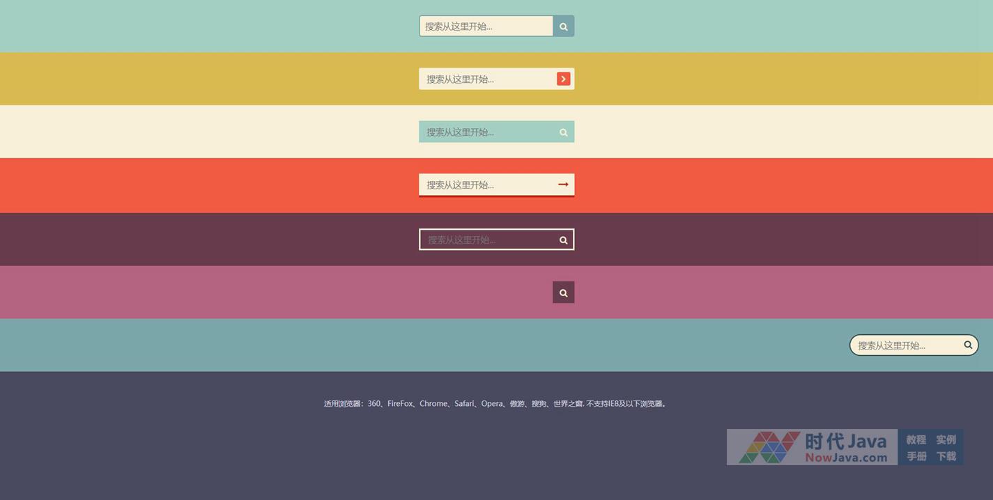 7种不同样式风格的纯CSS3 UI制作美化的搜索框样式代码,有的还有动画效果,总有一款是你喜欢的。
