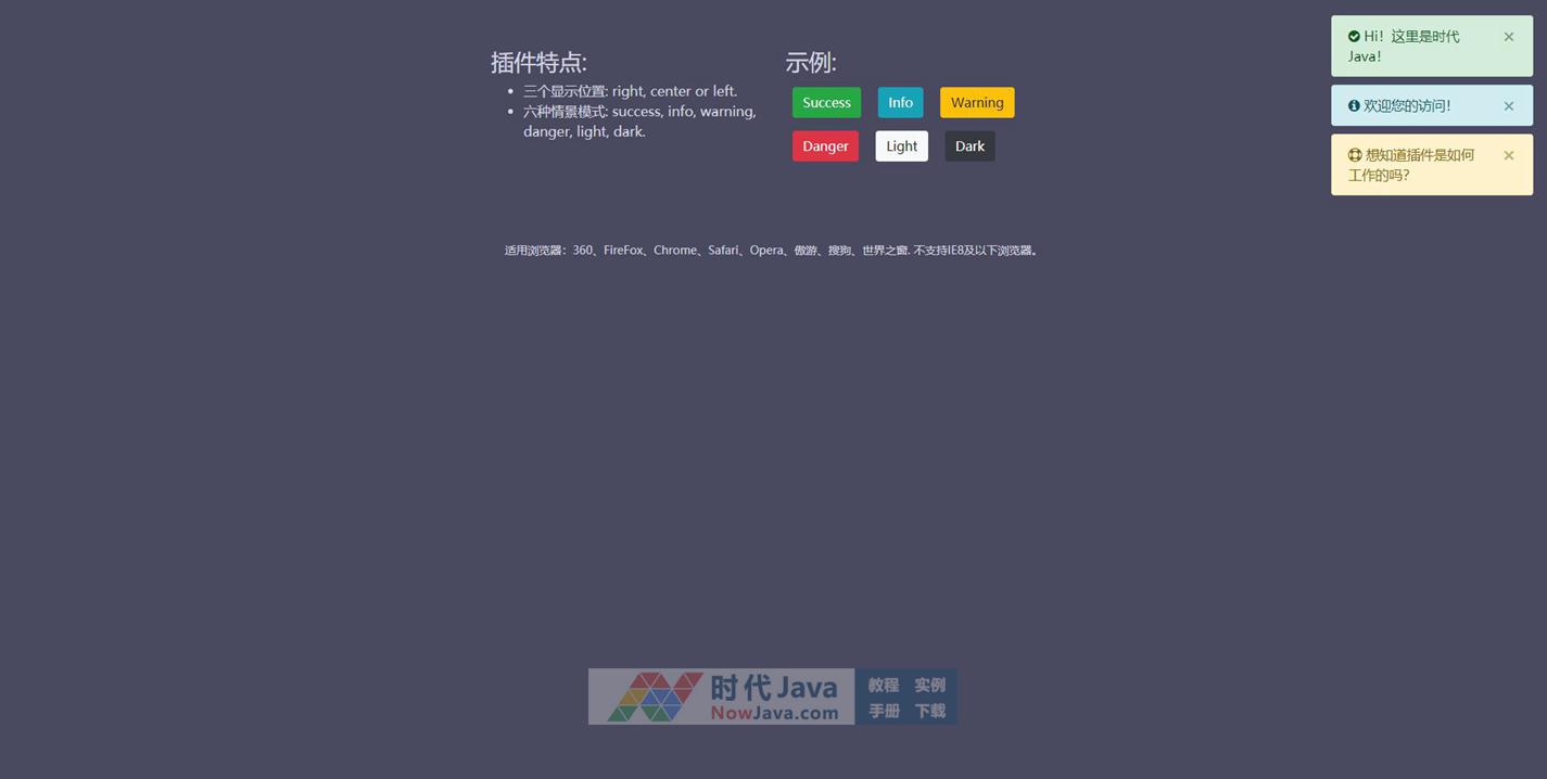 一款基于Bootstrap风格样式的jQuery仿Mac系统弹出消息提示框插件,网页右上角弹出消息提示代码,会自动关闭。