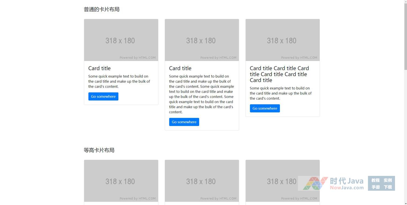 基于jQuery和Bootstrap实现的卡片图文列表布局样式代码,包括普通的卡片布局、等高卡片布局等。