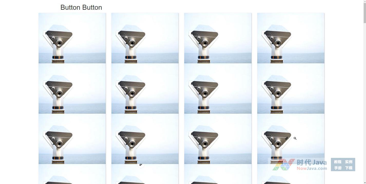 当鼠标移入到图片上的时候,其中的按钮保持水平居中显示