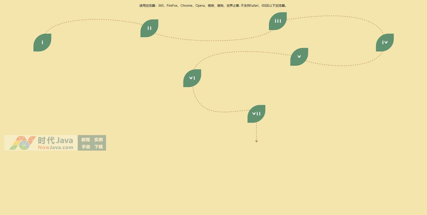 一款创意的CSS3 SVG绘制叶子虚线响应式布局代码,大家应该看得出来,这个适当调整可以做步骤流程图。