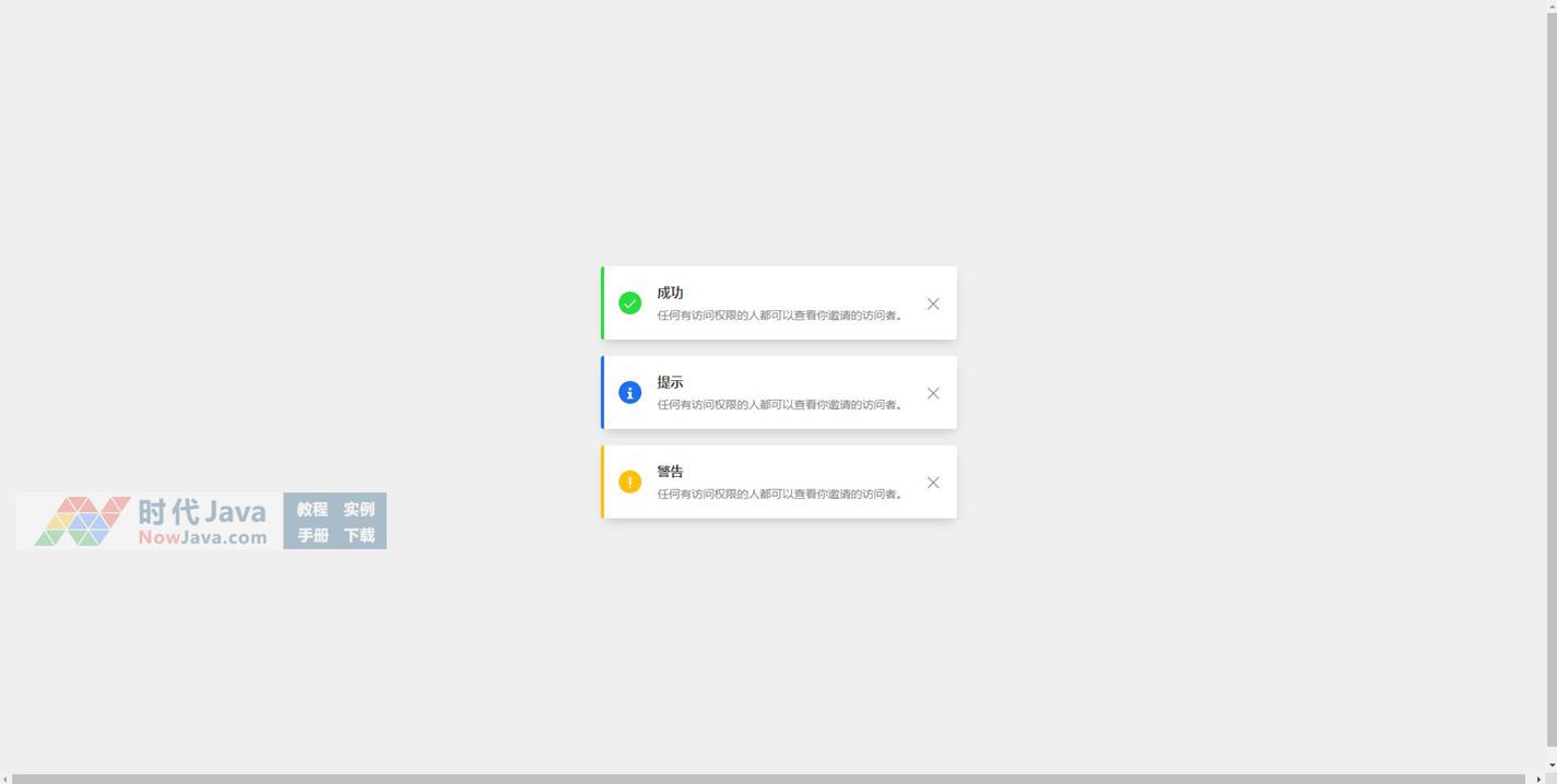 这是一组带关闭按钮的CSS3 SVG消息提示框样式特效,好看又实用网页消息提示效果。