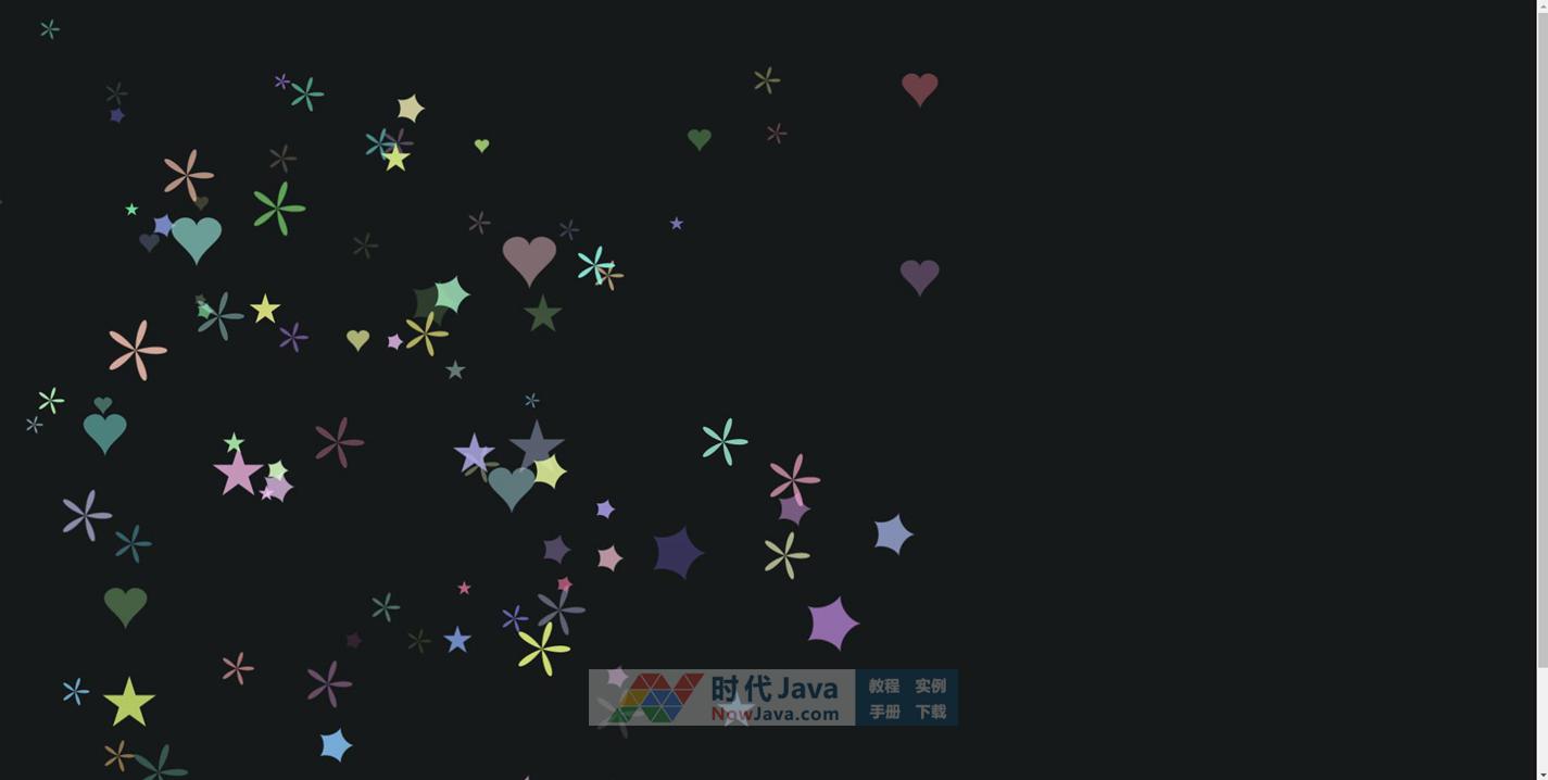 CSS3@keyframes属性制作五颜六色的花纹图案动画特效,星星、叶子、花朵、爱心混合动画效果。