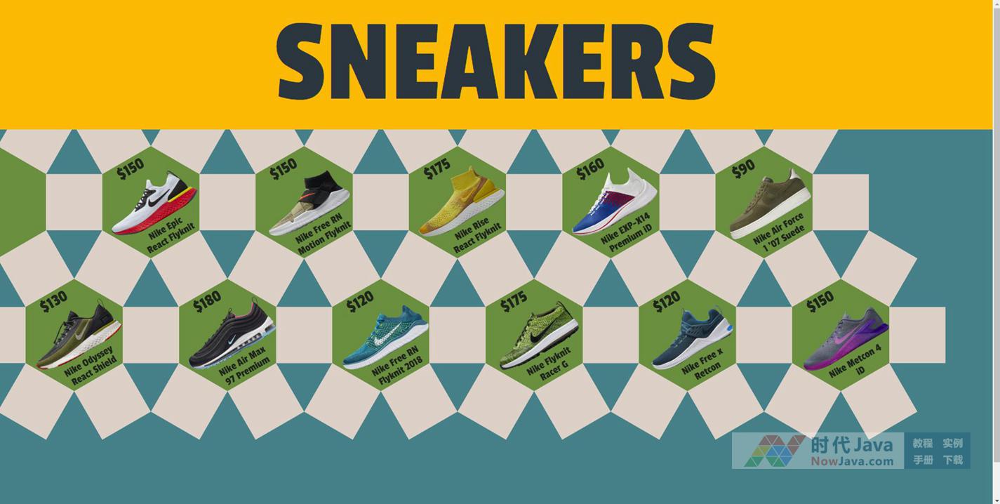 CSS3创意六边形网状布局图片展示特效,适用于产品商品展示ui布局效果,而且可以自适应手机端,非常不错!