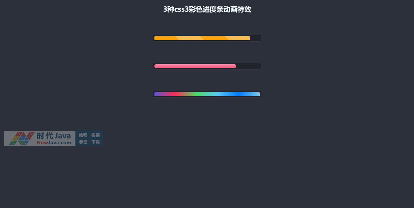 css3彩色loading加载进度条动画特效,本例有3种漂亮的网页加载进度条样式,具体效果请查看演示。