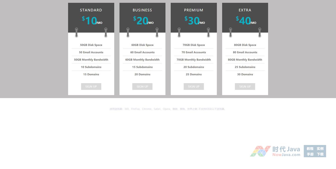 CSS3扁平风格价格表布局样式代码是一款精美好看的网站扁平化设计CSS3价格表特效。