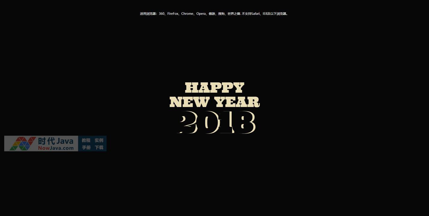 一款好看的CSS3绘制2018新年快乐文字动画特效,字体是外部引用谷歌的某种英文字体样式,如果换成中文汉字的话,可以根据你的眼光选择字体。