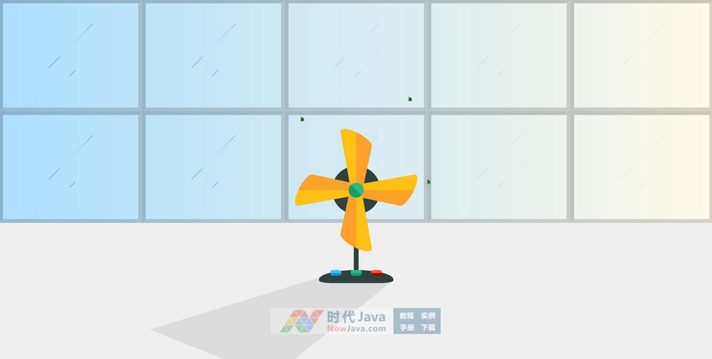 这是一款css3基于keyframes属性绘制的卡通电风扇动画特效,支持按钮控制风扇高度、开关、风速。