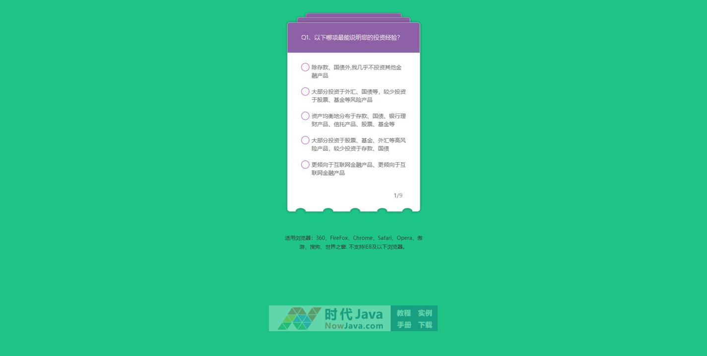 CSS3问答答题卡翻页切换动画特效是一款投资问答CSS3代码,翻页动画效果非常的酷。