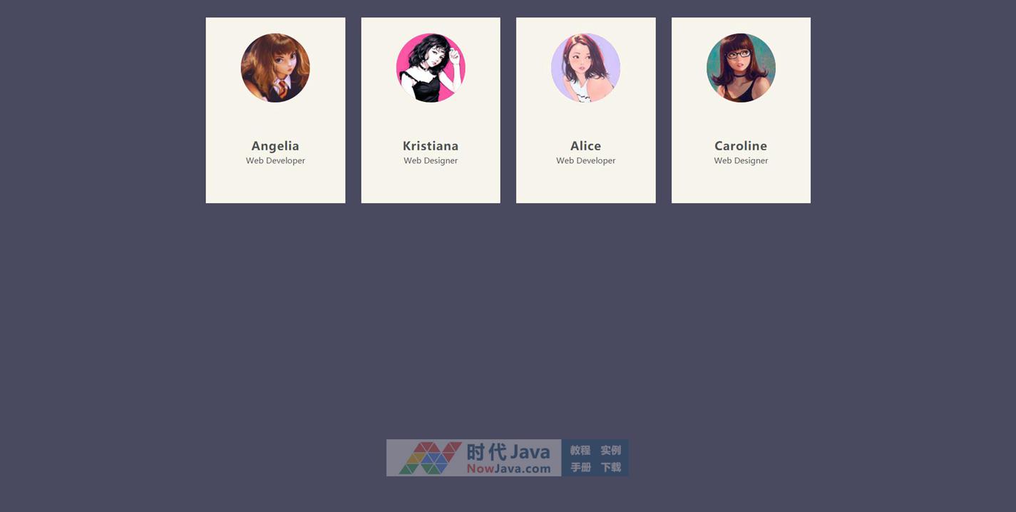 一款非常好看的css3鼠标悬停个人信息卡片显示分享按钮背景动画特效,可用于团队成员介绍。