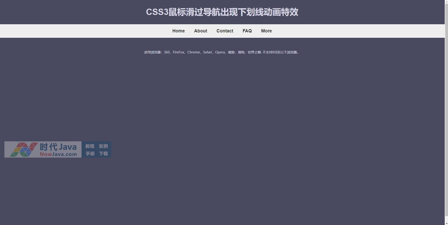 这是一款非常漂亮的CSS3制作的鼠标滑过导航菜单时的从左到右出现下划线动画效果。