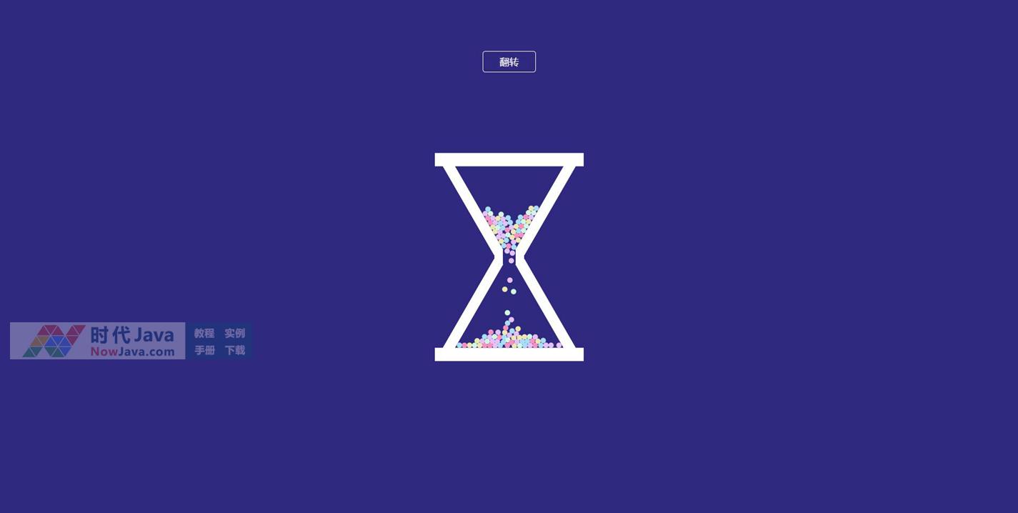 一款创意个性的html5 canvas可翻转时间沙漏动画特效,可以点击翻转按钮将三角形沙漏翻转过来。