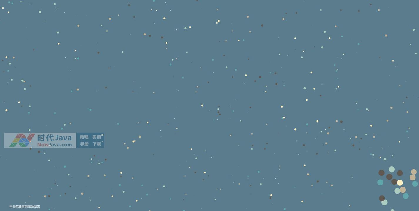 html5 canvas圆形粒子移动背景动画特效,点击页面可以改变网页背景颜色,鼠标附近的圆形粒子会变大的效果。