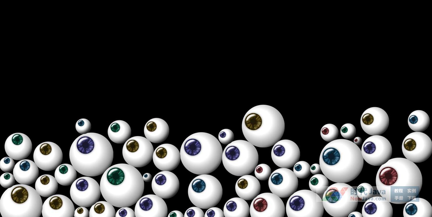 一款趣味性十足的HTML5 Canvas眼睛眼珠跟随鼠标转动特效,仿佛有无数只眼睛盯着鼠标指针方向,还可以拖动眼睛进行碰撞哦。