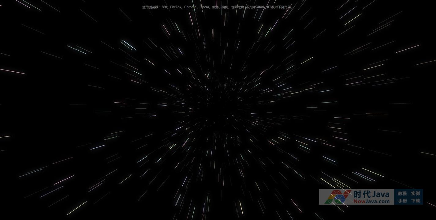 这是一款html5 canvas线条发散时光穿梭动画特效,速度非常快,模拟时空穿越动画效果。