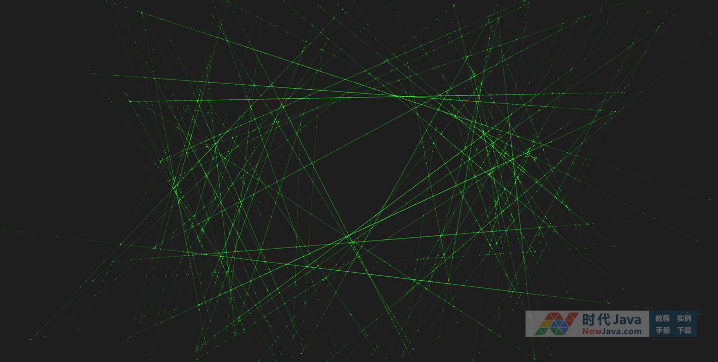 HTML5 Canvas绘制绿色激光射线动画特效,密集交错的3D激光线条跟随鼠标移动改变方向。