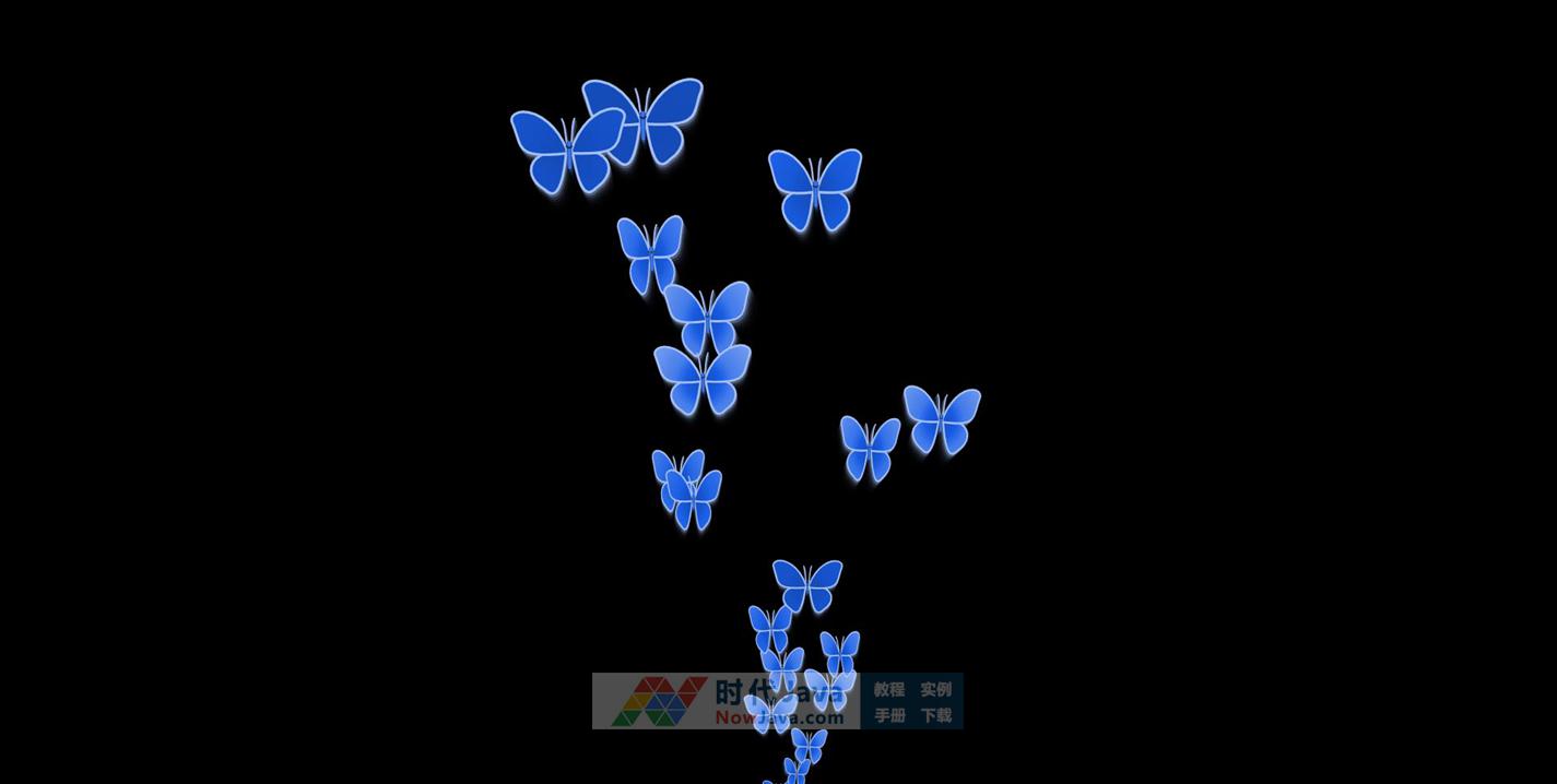 基于html5 canvas绘制的一款飞舞的蝴蝶动画特效,彩色蝴蝶向上飞动画效果。