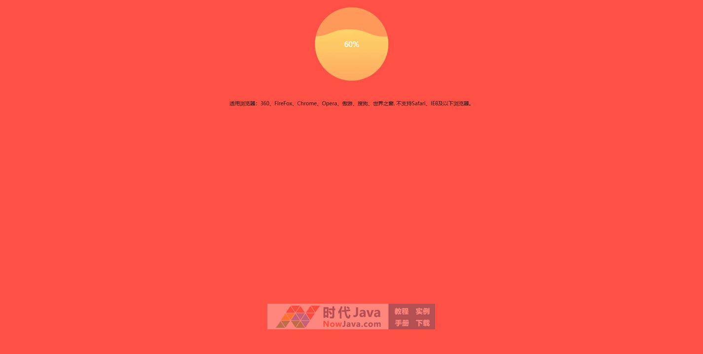 简单漂亮的html5 css3圆形波浪百分比加载动画特效,canvas波浪滚动上升网页加载动画效果。