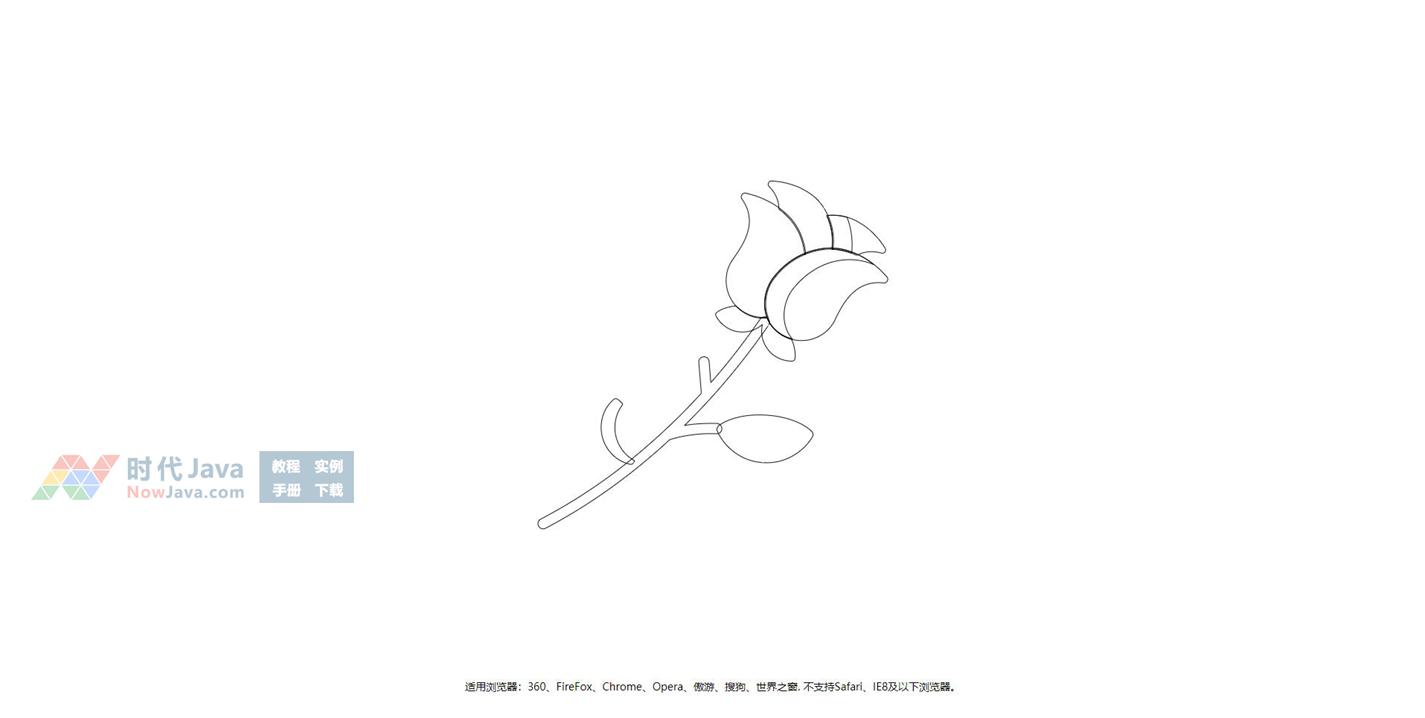 一款简单的HTML5 SVG绘制卡通玫瑰花动画特效,先用线条勾画出玫瑰花的形状,再生成颜色过程动画。