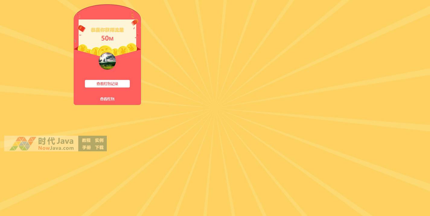 这是一款打开红包获得流量动画代码,是HTML5+Canvas实现的打开手机红包动画出现提示的特效。