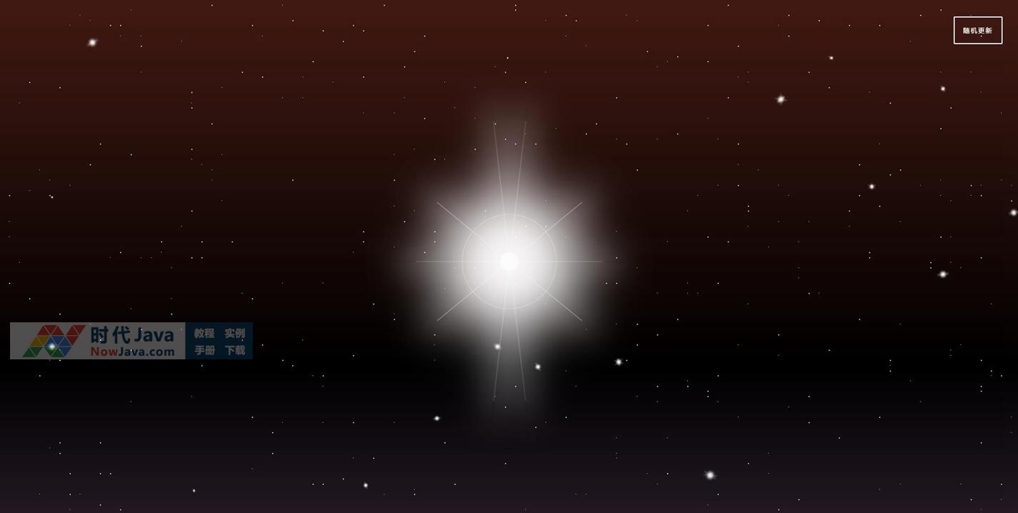 一款html5+css3绘制而成的夜空中星星光晕动画特效,点击右上角随机更新按钮可以重新随机显示小星星。