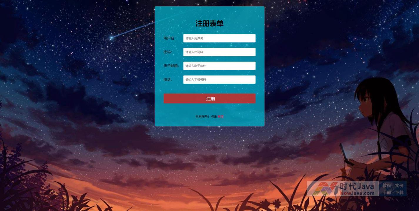 一款带全屏大图背景的html5+css3登录注册表单切换页面代码,同一个页面的登录表单与注册表单切换效果。