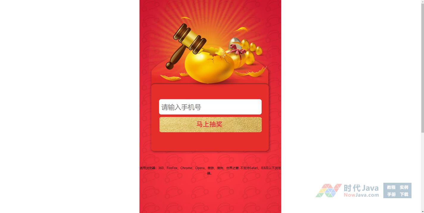 一款基于jQuery+HTML5实现的手机微信网站砸金蛋抽奖活动代码,输入入手机号码即可开砸,有动态效果。