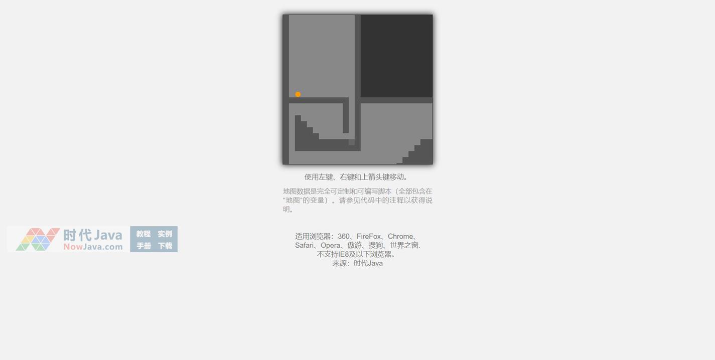 一款挺好玩的HTML5珠子走出迷宫小游戏代码,使用左键、右键和上箭头键移动。地图数据是完全可定制和可编写脚本(全部包含在“地图”的变量)。请参见代码中的注释以获得说明。