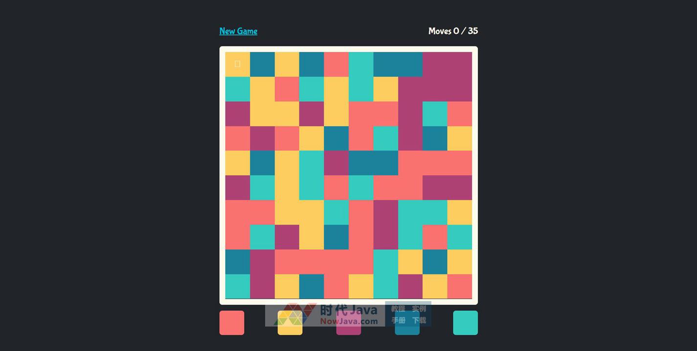 非常简单好玩的一款HTML5颜色匹配网页小游戏代码,点击下方色块同化周围色块,将所有颜色变换成一种颜色就赢了。
