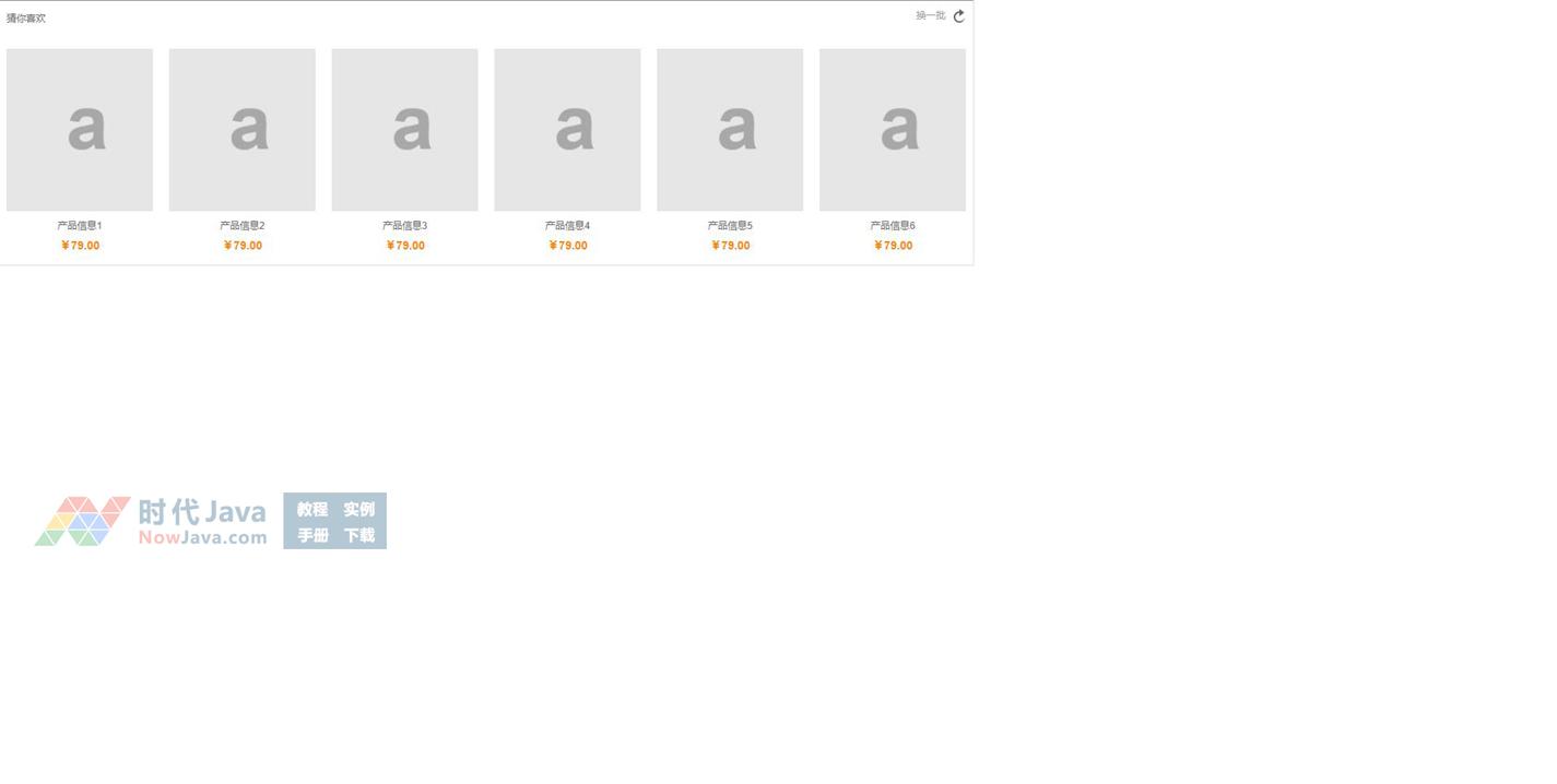 效果描述: 在大型购物网站,比如淘宝或者京东首页,我们经常看到首页或者个人中心页面有一组栏目 叫做“猜你喜欢”或者“换一批”类似的风格 今天给大家推荐个前端部分,希望对网友有用处 使用方法: 1、将CSS样式拷贝到你的网页中 2、将body中需要的代码部分拷贝到你需要的地方即可 (注意保持文件路径的正确性)