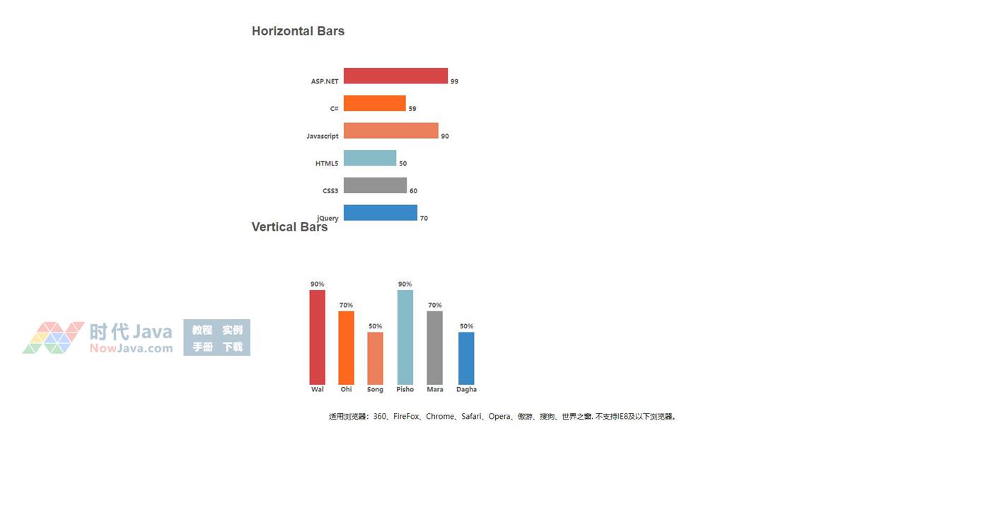 这是一款基于jqbar.js实现的柱状图动态显示进度条特效,简单实用的jQuery柱形百分比进度条代码。