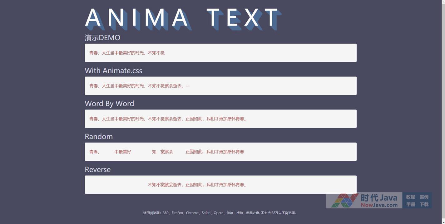 基于css3 animate样式表制作多种好看的文字动画效果,jQuery酷炫网页文字动画特效,CSS3文字动画插件。
