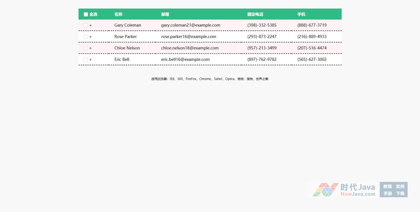 这是一款简洁美观的通过js载入表格数据,点击选中表格行变色特效。jQuery Table选中表格行变色代码。