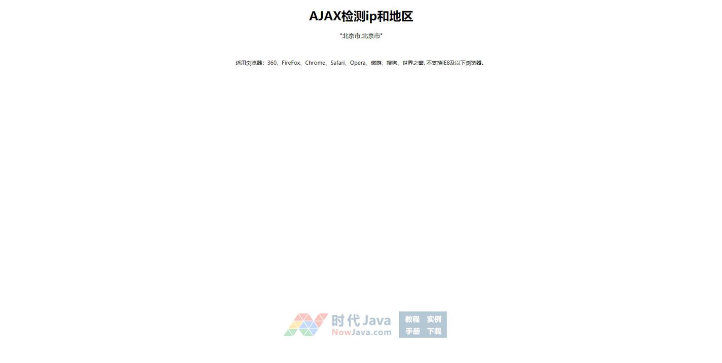 这是一款非常简单实用的jQuery+Ajax获取当前IP地址和省市地区位置代码,调用ajax函数获取IP地址和所在省份城市。