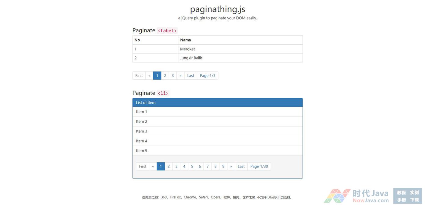 paginathing.js是一款可以设置固定列表分页显示的jQuery+Bootstrap动态分页插件,Bootstrap分页样式看上去简洁又不失美感。