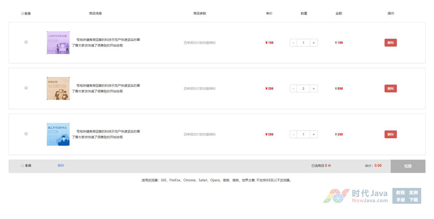 这是一款jQuery+Bootstrap布局购物车结算页面代码,支持商品数量加减、全选、自动计算金额等。
