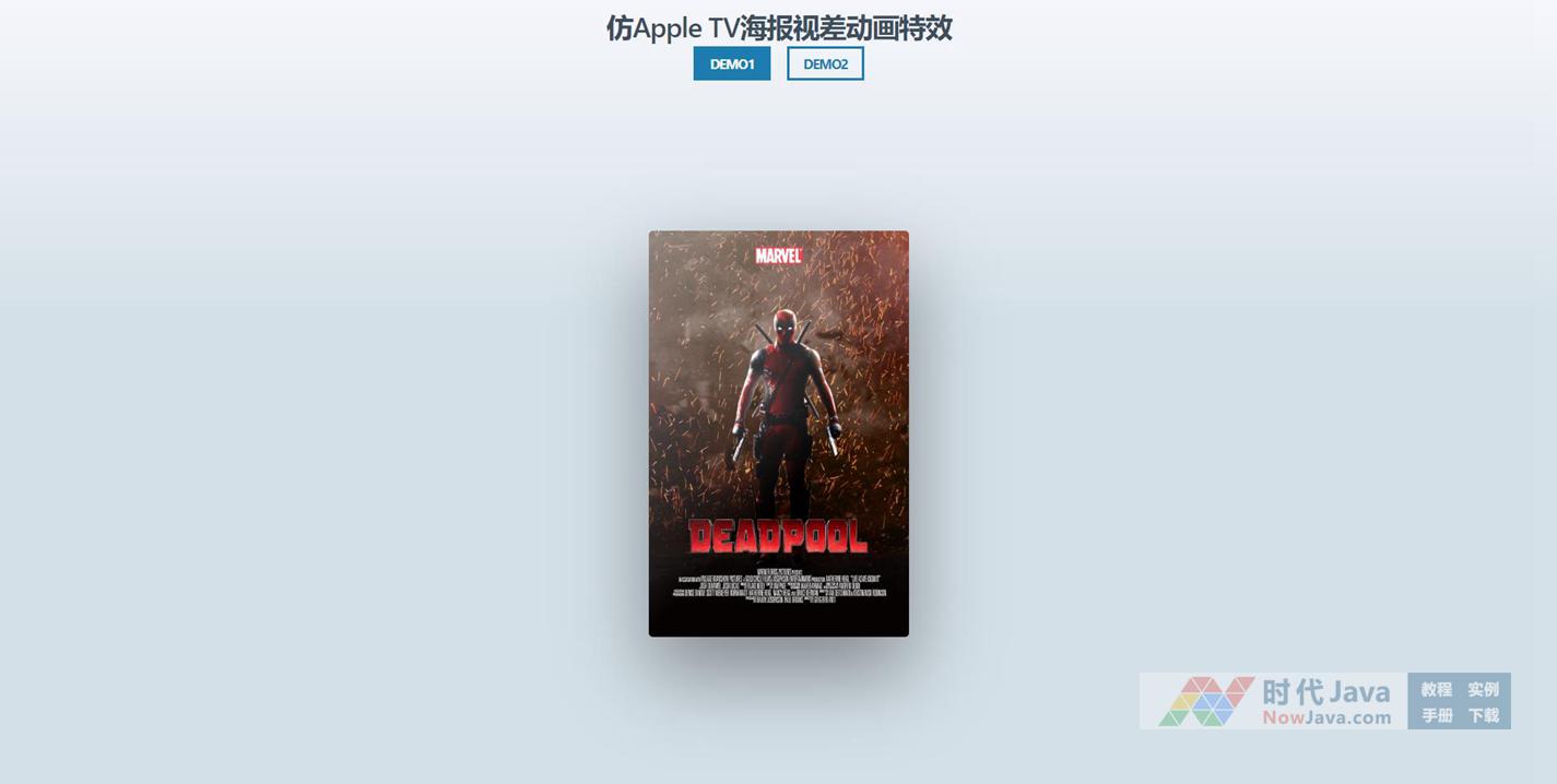 一款基于jQuery+CSS3+HTML5实现的电影海报跟随鼠标移动视差动画特效,仿Apple TV海报3D视差动画效果。