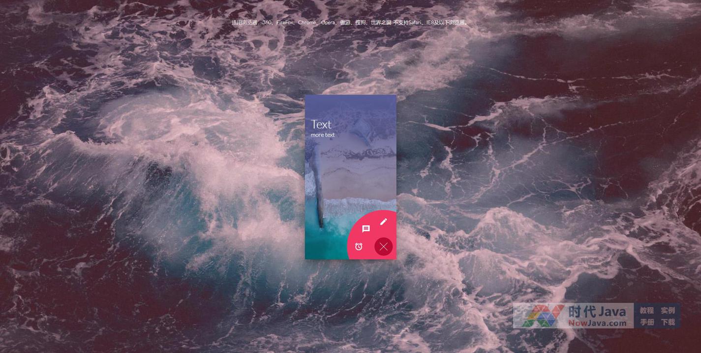 一款基于jQuery SVG+CSS3实现的右下角图标菜单代码,点击右下角浮动按钮展示图标菜单,再点击图标菜单则打开该菜单内容展示区,打开关闭菜单项的过程中还伴随着很棒的动画效果。