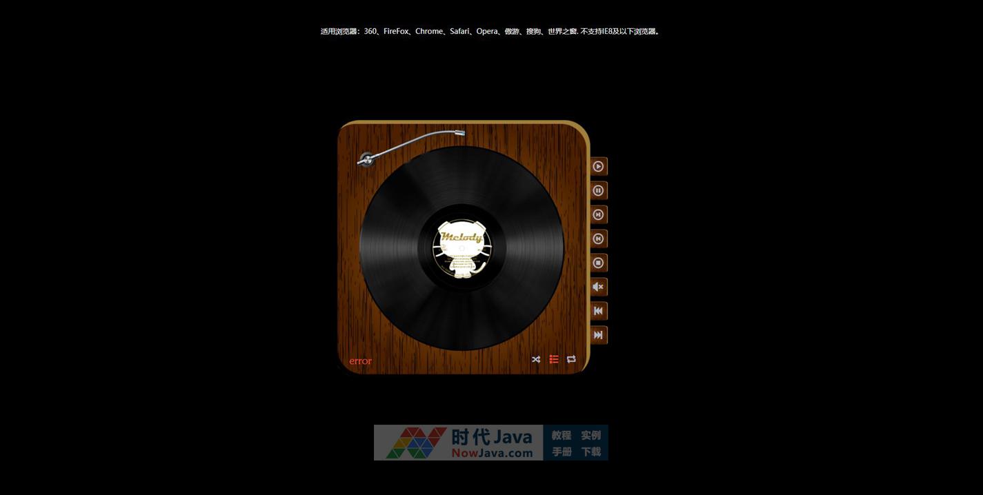 一款不错的怀旧复古风格jQuery+HTML5实现的MP3网页音乐播放器代码,功能相当齐全,还有动画效果,推荐下载。