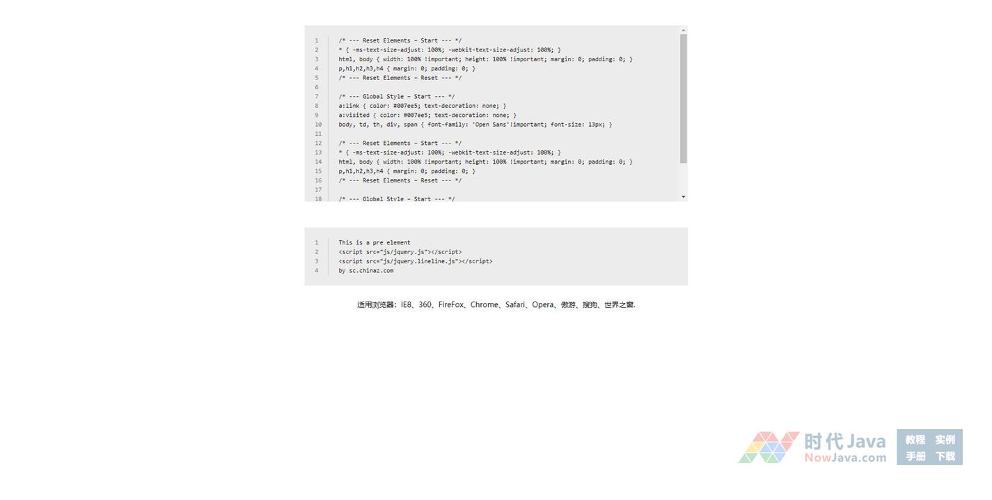 一款基于jquery.lineline.js插件实现的自定义代码行号特效,jQuery自动生成代码行号效果,支持textarea,code,pre标签自动渲染。
