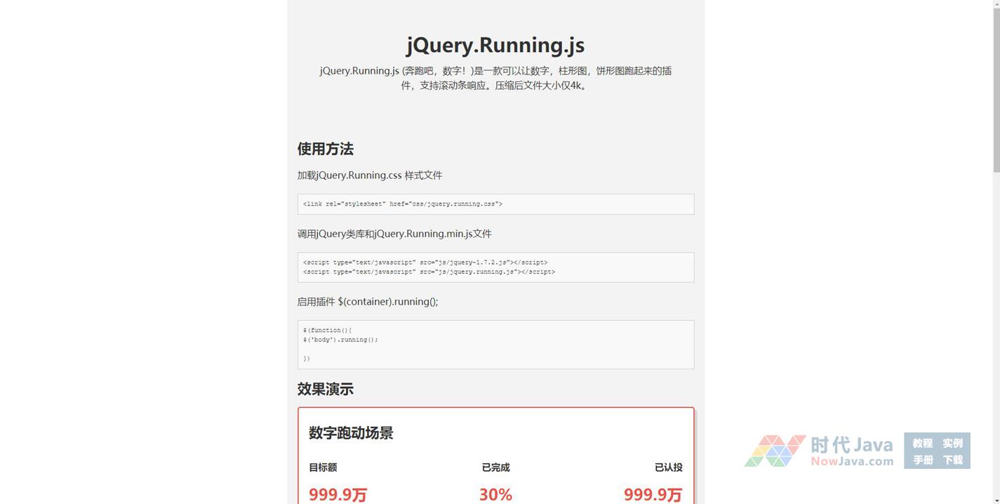 jQuery.Running.js响应式页面滚动数字增长动画插件 (奔跑吧,数字!)是一款可以让数字,柱形图,饼形图跑起来的代码,支持滚动条响应。
