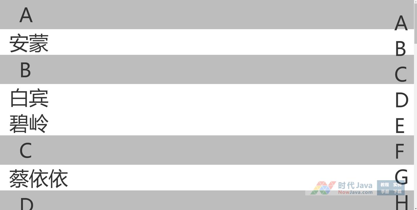 一款比较简单的jQuery仿手机通讯录首字母查找联系人代码,点击右侧悬浮首字母即滑动跳转到该首字母联系人姓名处,界面风格比较普通,有兴趣的朋友可以进一步美化。