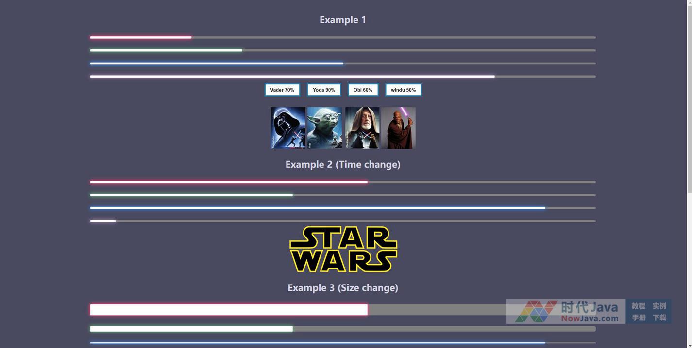 很有创意使用彩色霓虹效果,jQuery仿造星球大战中的激光剑效果的水平进度条代码,jQuery百分比进度条动画特效。