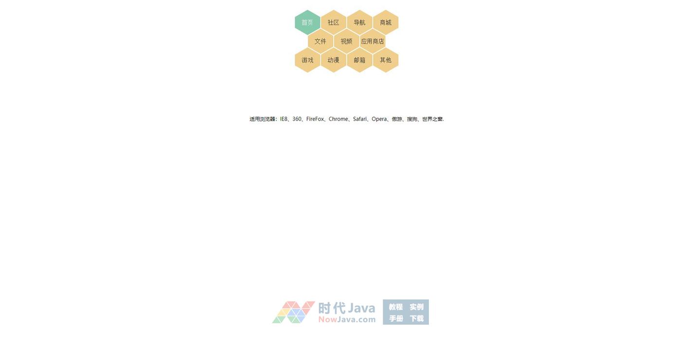 jQuery六边形蜂巢布局关键词标签代码是一款兼容IE8以上浏览器蜂巢导航菜单特效。