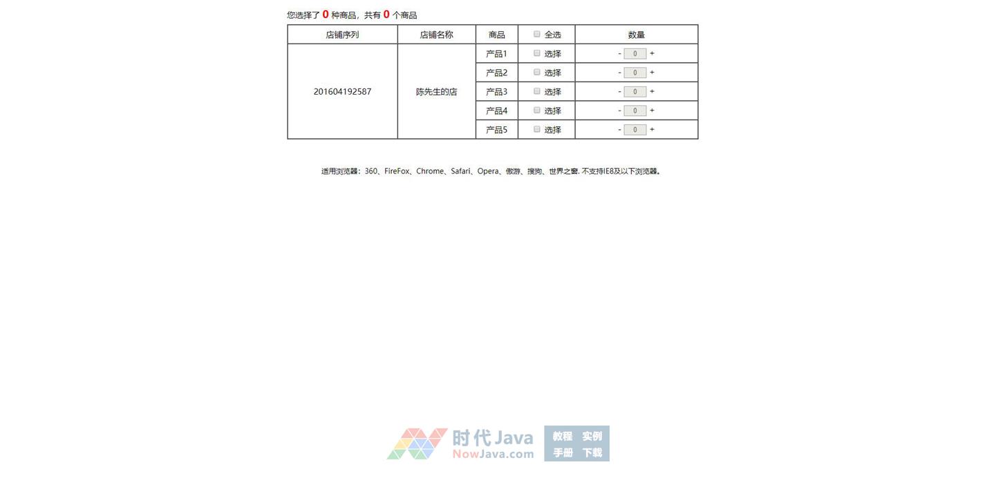 jQuery勾选购物车商品数量增加减少代码