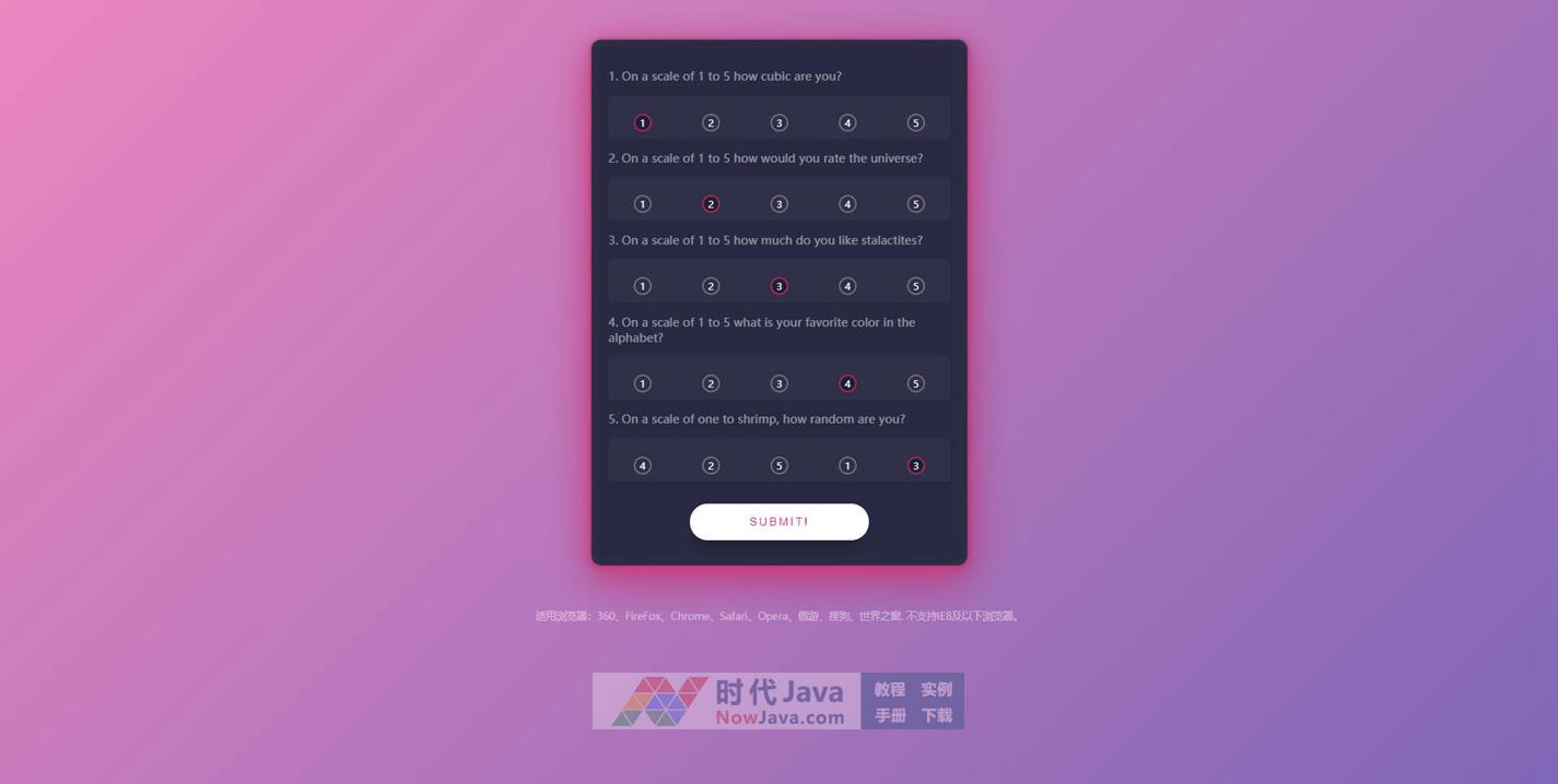 一款经过美化简单实用的jQuery单项选择题问卷调查表单代码,jQuery问卷调查表单样式。