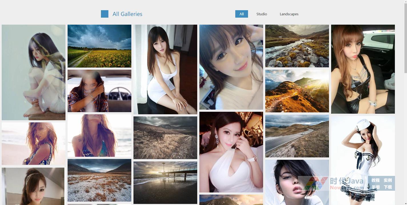 jQuery可筛选响应式图片瀑布流布局代码