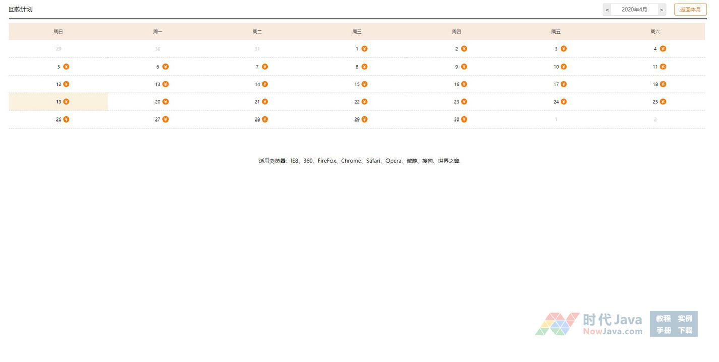 jQuery响应式回款计划日历表代码是一款理财常用的备注提示小工具代码。
